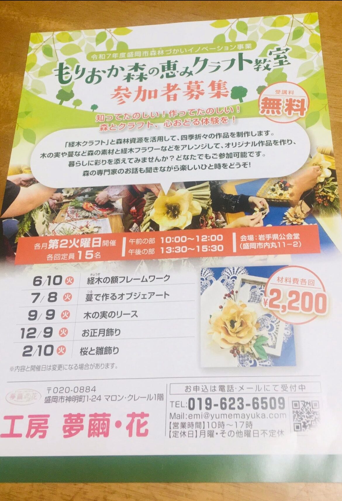 6月より毎月第二火曜日に岩手県公会堂で「もりおか森の恵みクラフト教室」を開催しています。