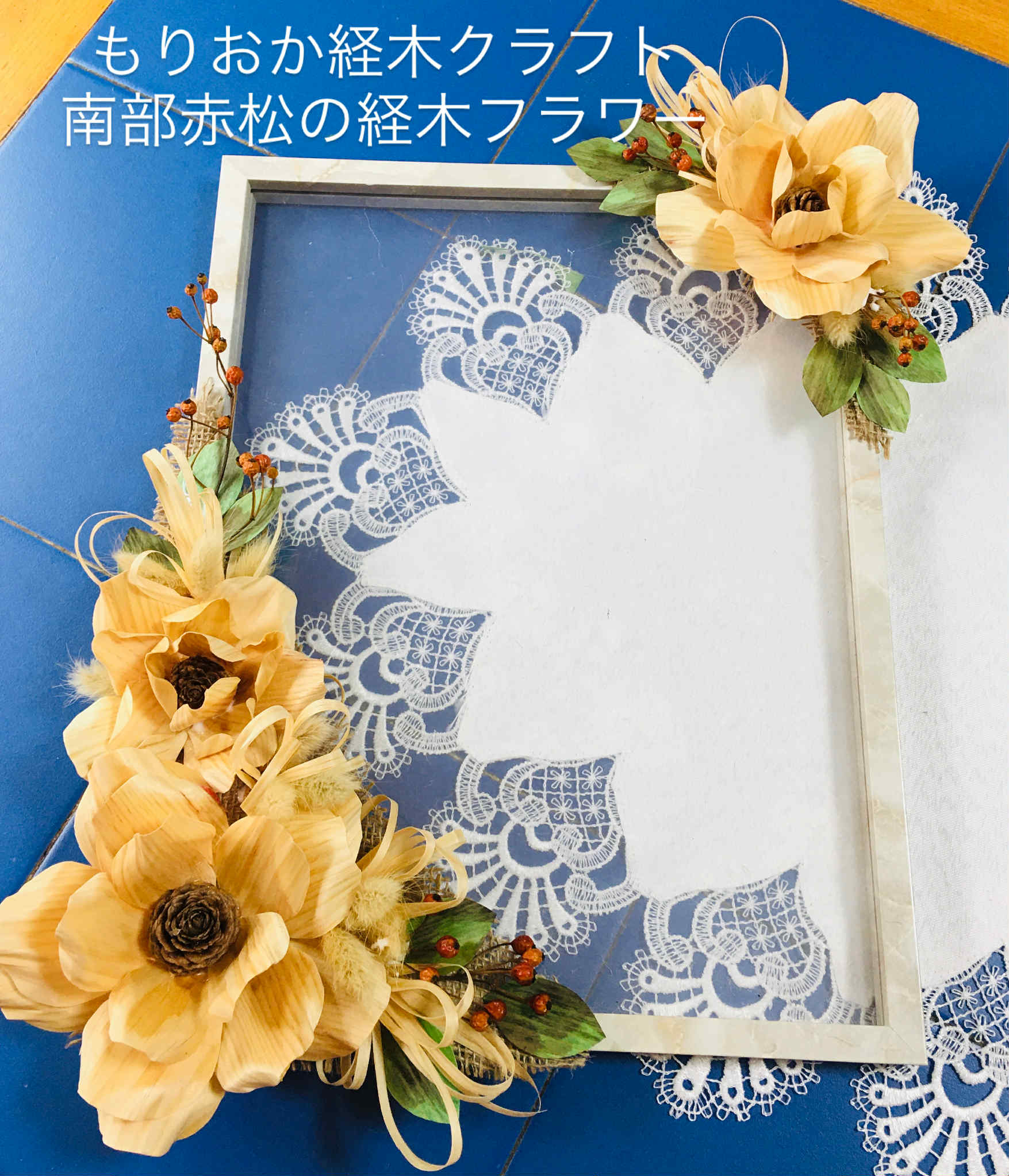 経木でできたフレームには、オプションで繭玉で作る動物を飾ることもできます。(費用がプラス550円〜880円になります)